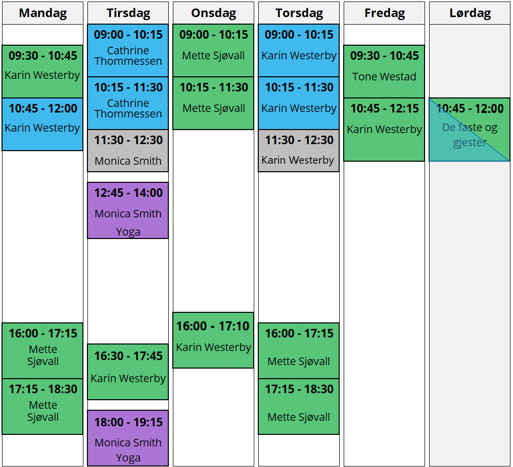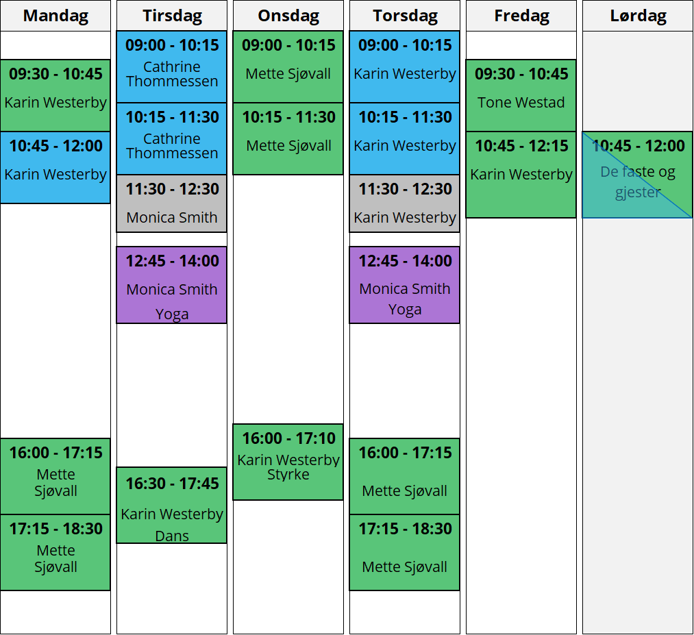 Grønne timer: For styrke, kondisjon og smidighet, nokså høy intensitet.